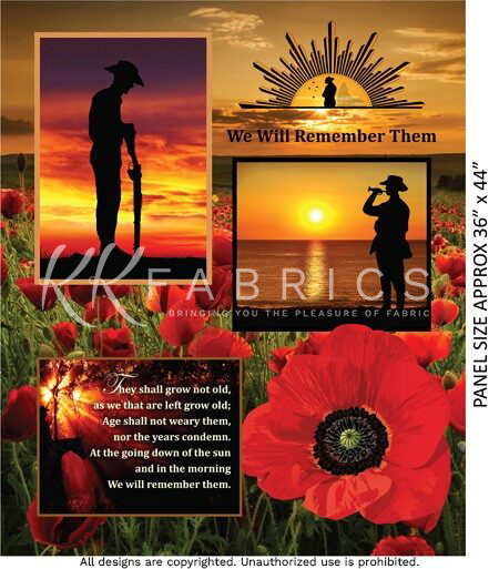 Welcome to Remembering, our popular collection of Remembrance inspired cotton prints. This is a classic fabric collection honouring our heroic soldiers. Designed by Milvale Design Studio exclusively for KK Fabrics, Remembering will be loved by all! We know you will enjoy sewing and selling this unique range!